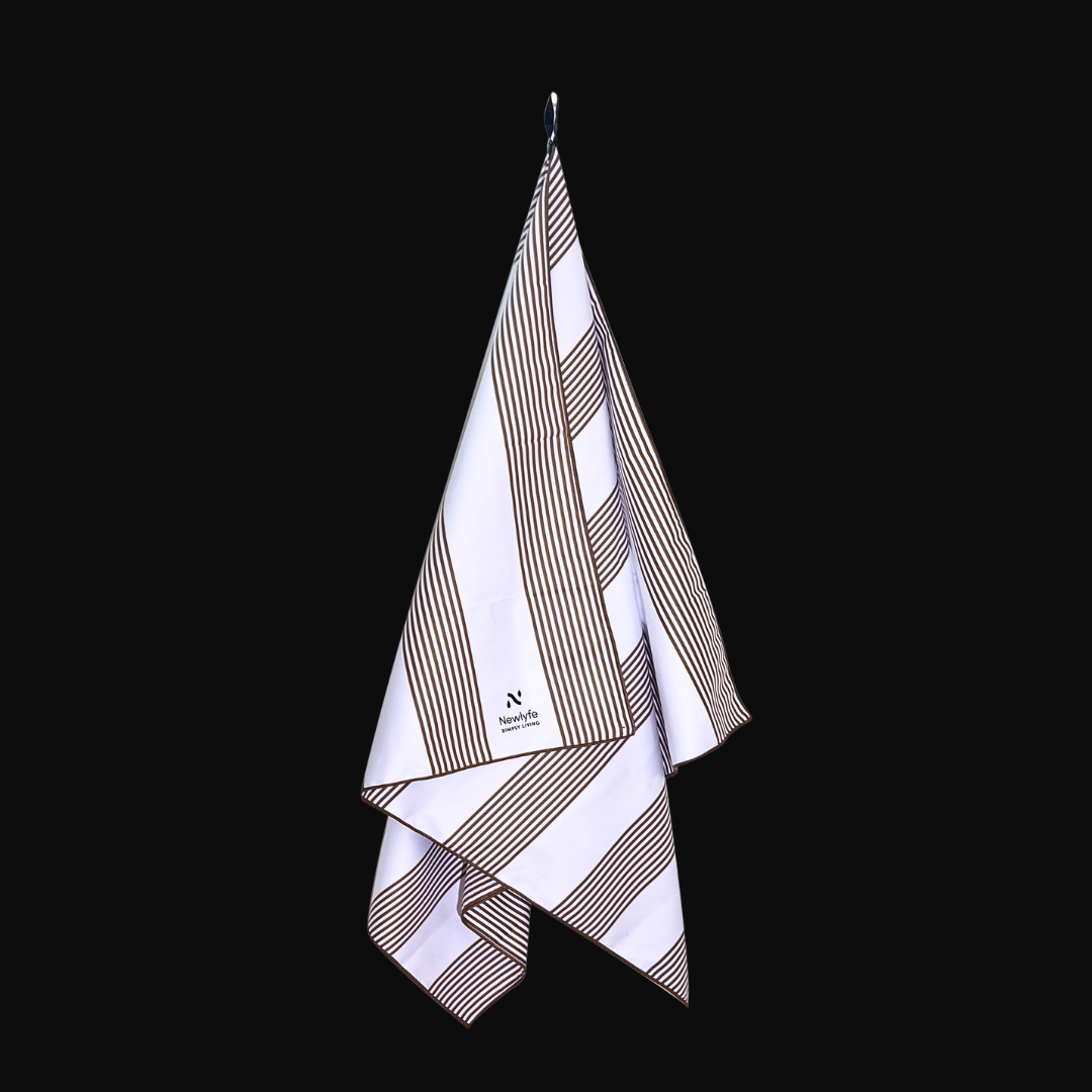 No more heavy, bulky, sandy beach towels that take forever to dry! Newlyfe Signature Beach Towels are quick dry, silky soft, huge rolled out yet fold down to the size of a water bottle and weigh just 330grams, so they’re easy to pack and carry! Hang them anywhere with the handy snap lock hanging loop, ideal for the beach, pool, caravan, camping, and more!