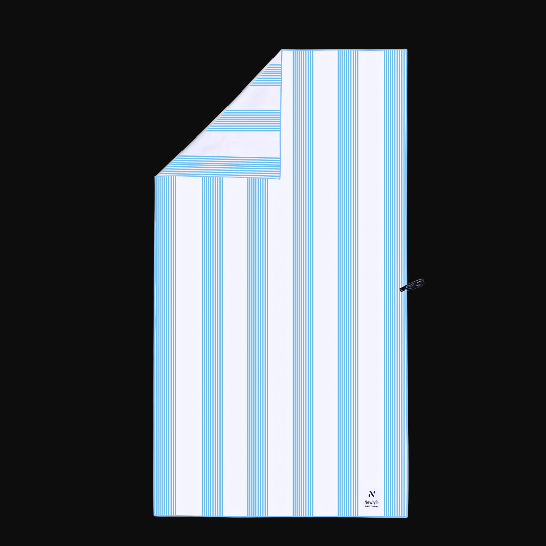 The Signature Collection takes everything you love about Newlyfe towels, sand-free, quick-dry, compact, lightweight and gives it a sophisticated twist. The Calvi Sky Blue print blends Newlyfe performance with a refined nautical look.