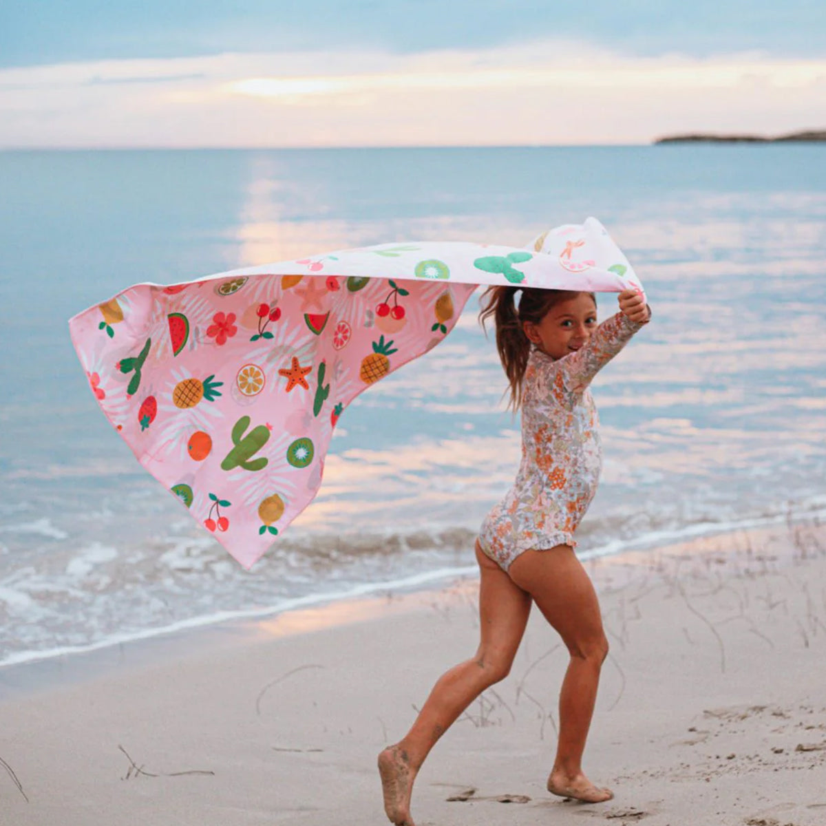 Keep the sand at the beach and out of your car, with our Sand Free Beach Towels for kids! Suede microfiber dries much quicker than cotton, has a silky soft feel your kids will love, and it makes them so compact & lightweight your kids can carry their own towel! The handy hanging loop makes them easy to hang anywhere and folding up smaller than a water bottle, they’re the perfect towel for caravan and camping, school swimming lessons and camps!