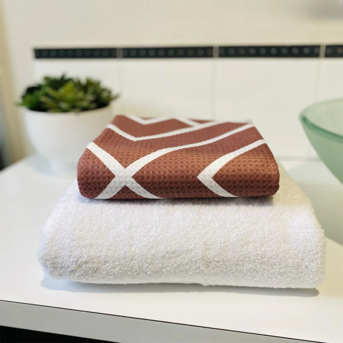 LUXURIOUSLY SOFT & PLUSH – the perfect alternative for anyone who prefers to use a traditional cotton towel to dry off with. Our new premium waffle weave microfiber is slightly thicker than our beach towels, offering that super soft ‘plush’ feel that we all know and love after a shower!