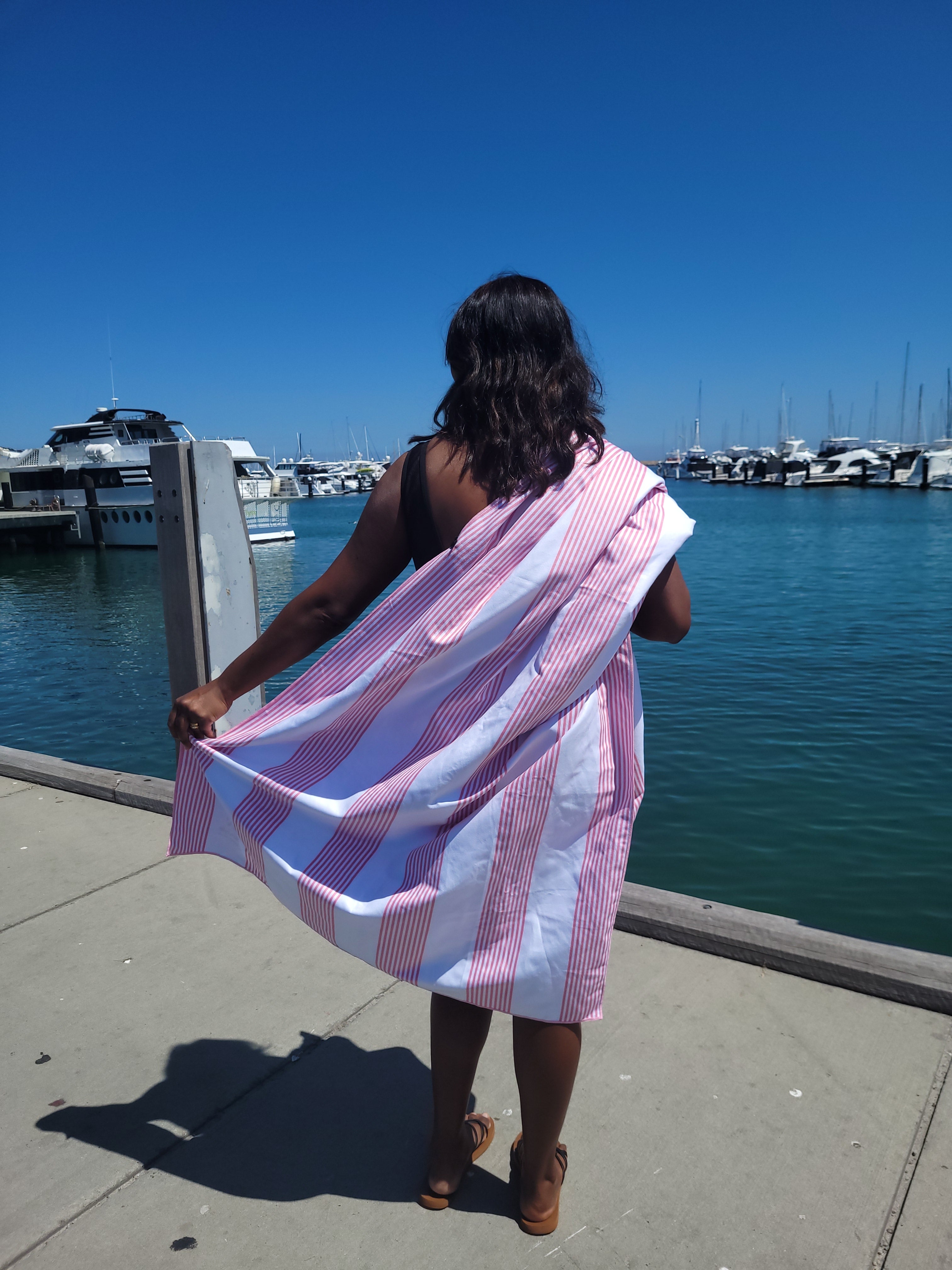 The Signature Collection takes everything you love about Newlyfe towels, sand-free, quick-dry, compact, lightweight and gives it a sophisticated twist. The Sanur Pink print blends Newlyfe performance with a refined nautical look.